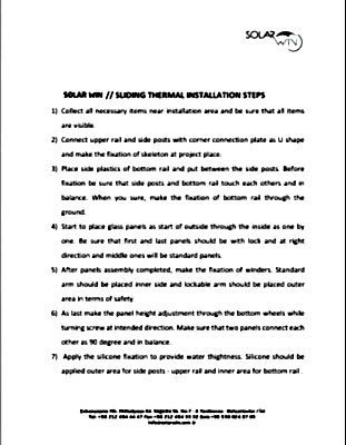 - Kenetlenmeli şeffaf conta kullanılabildiği gibi kıl fitilli alüminyum contada kullanılabilir. Solarwin olarak alüminyum tavsiye etmekteyiz.
