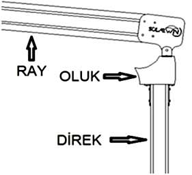 “Kumaştan gelen suların gizli oluğa toplanmakta oluktan ise direğin içinde dışarıya atılmaktadır. Projede kullanılan ray ve oluk bağlantı şekli çizim-4 te gösterilmektedir.”