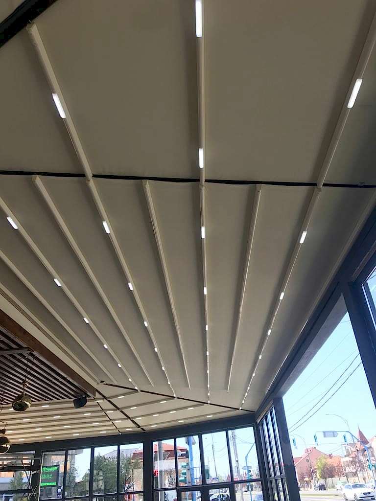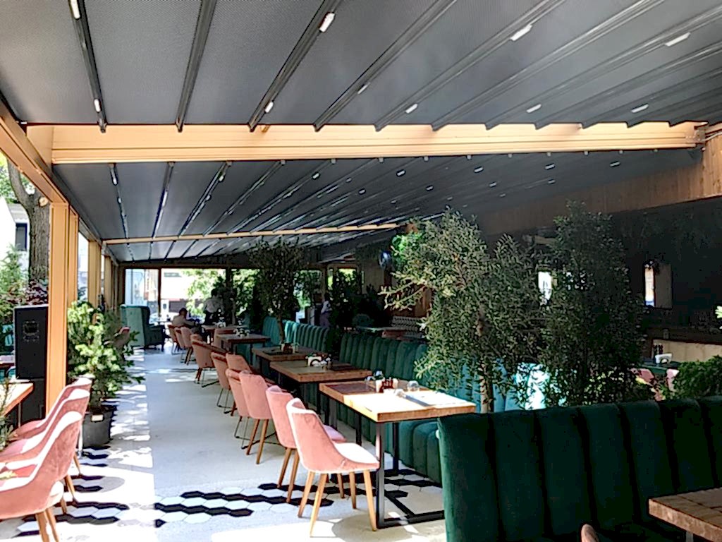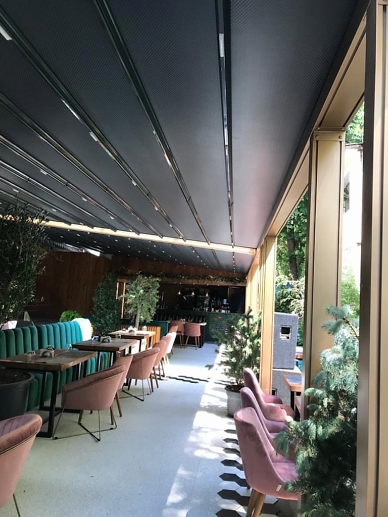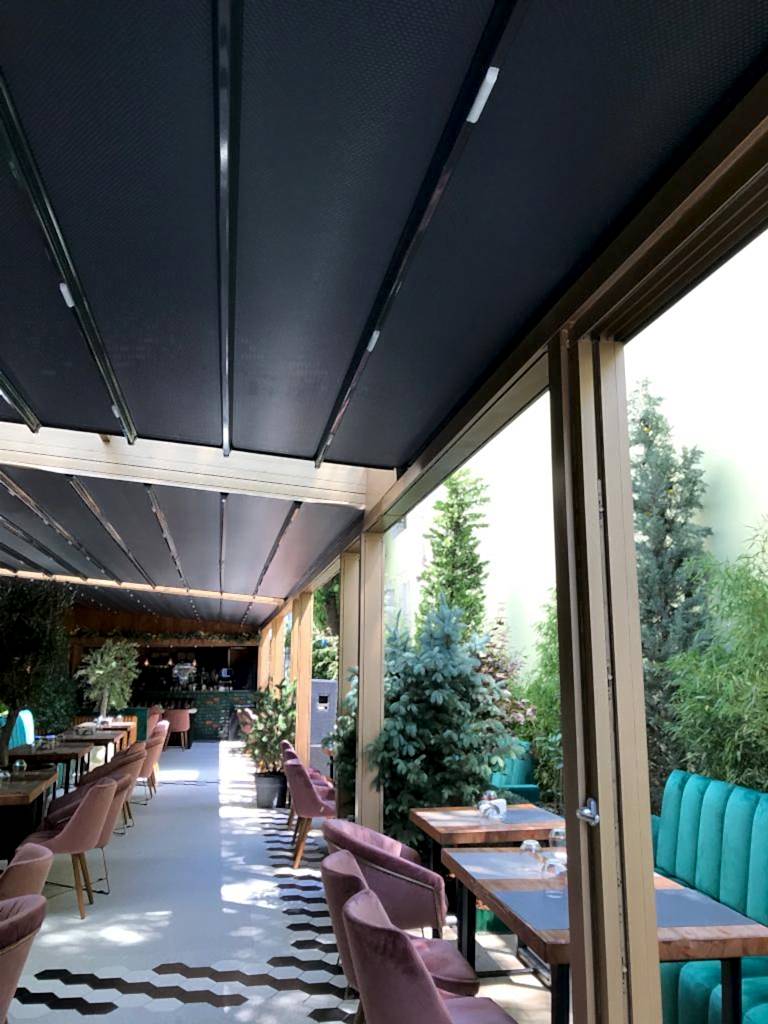 Ürün, tek eğim olacak şeklinde tasarlanmış alüminyum taşıyıcılar üzerine adapte edilmiş, raylarda hareket eden açılır & kapanır tavan örtüsünden oluşan ve gizli yağmur dereli bir sistemdir.