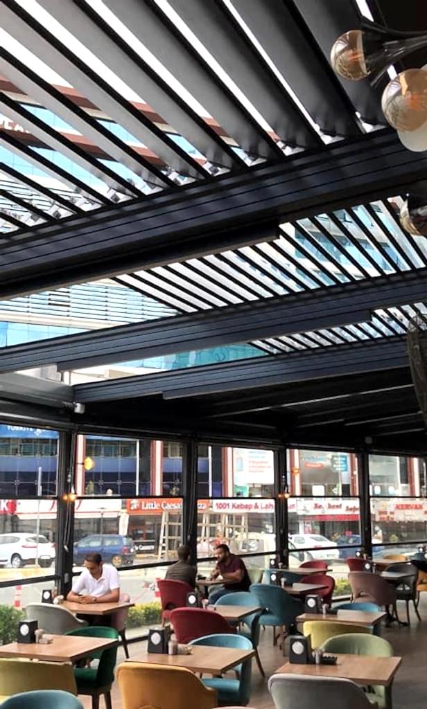 Rolling Roof Eğimli Açılır Alüminyum Panel Tavan Uygulama Görselleri